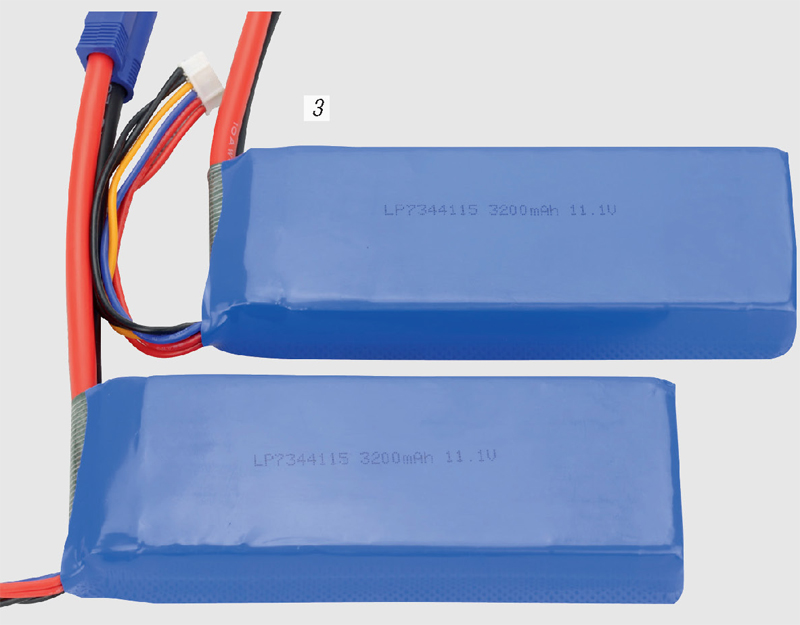 圖3 電壓:11.1V 為3顆3.7V倍率電芯串聯塑封所得